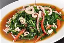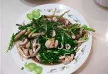 爆炒鱿鱼,是用鱿鱼制作的一道家常菜。鱿鱼有少量的脂肪和碳水化合物,含有大量的胆固醇,…全部>>