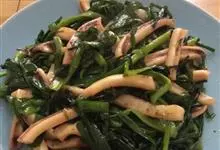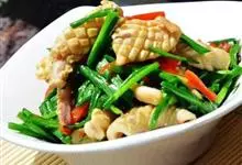 爆炒鱿鱼,是用鱿鱼制作的一道家常菜。鱿鱼有少量的脂肪和碳水化合物,含有大量的胆固醇,…全部>>