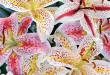 东北百合,别名卷莲花、老哇芋头、轮叶百合、伞蛋花、山丹花,为百合科、百合属多年生球根花卉。鳞茎卵圆形,白色,有节。苞片叶状,花淡橙红色,具紫红色斑点;花被片稍反卷,蒴果倒卵形,花期7-8月,果期9月,…全部>>