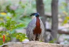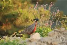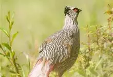 红腹角雉属于鸡形目雉科,雄鸟体羽及两翅主要为深栗红色,满布具黑缘的灰色眼状斑,下体灰斑大而色浅。雌鸟上体灰褐色,下体淡黄色,杂以黑、棕、白斑。全部>>