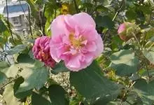 木芙蓉,锦葵科木槿属落叶灌木或小乔木。小枝上有细绒毛;叶片为卵状心形,托叶为披针形,常早落;花单生,花萼为钟形,花冠初为白色或淡红色,后逐渐变为深红色;果实为扁球形,有淡黄色的毛附着。花期8到10月。…全部>>