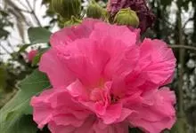 海滨木槿是锦葵科木槿属植物,落叶小乔木,株高3-5米,胸径20厘米,扁球形树冠,枝叶繁盛。厚纸质单叶互生,扁圆形、倒卵形或宽倒卵形,先端钝近平,具短突尖,基部圆形或浅心形,叶缘中上部具细圆齿,…全部>>