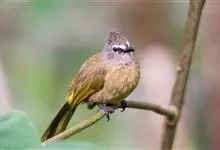 黄臀鹎,又称黄屁屁,是雀形目鹎科鹎属鸟类。成鸟额、头顶至枕部黑色,无明显冠羽,眼先和眼周亦为黑色,耳羽灰褐色,上体土褐色,尾暗褐色具不明显横斑,翼暗褐色,飞羽具淡色羽缘;下体颏、喉白色,…全部>>