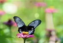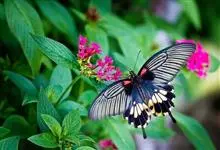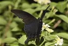 美凤蝶又名多型蓝凤蝶、大凤蝶,是鳞目凤蝶科凤蝶属动物。美凤蝶雄蝶无尾突,翅黑色,正面各翅室中部有深色条纹,分布蓝色鳞片,反面前后翅基部有红斑,后翅臀角有环状红斑。雌蝶具多型,前翅浅灰色,外缘和翅脉黑色,…全部>>