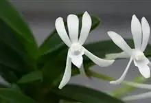 风兰 H.H.Hu):植株高8-10厘米。茎长1-4厘米,稍扁,被叶鞘所包。叶厚革质,狭长圆状镰刀形。总状花序长约1厘米,具2-5朵花;花白色,芳香;花瓣倒披针形或近匙形,长8-10毫米,…全部>>