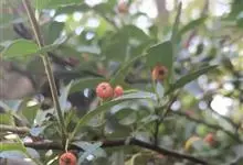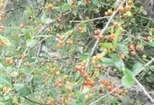 火棘 H. L. Li)是蔷薇科火棘属常绿灌木,老枝呈暗褐色;叶片呈倒卵形,边缘有钝锯齿,齿尖向内弯,两面皆无毛;叶柄短,无毛或嫩时有柔毛;花序是复伞房状,花瓣呈白色近圆形;果球近圆形,…全部>>