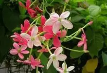 使君子 Jongkind)是使君子科、使君子属攀援灌木,叶对生,椭圆形,两面均被灰白色柔毛。穗状花序,倒挂下垂。花期夏秋。果有五棱,熟时黑色,种子白色。分布于印度、缅甸、菲律宾和中国。喜温润,深根性,…全部>>