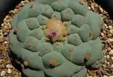 乌羽玉 Coult)是仙人掌科乌羽玉属的多年生肉质植物。老株丛生,萝卜状肉质根,球体偏球形,表皮暗绿色或灰绿色,株高5-8cm,棱垂直或呈螺旋状排列,顶部多绒毛,小花钟状或漏斗形,淡粉色至紫红色,…全部>>