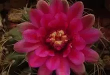 绯花玉 Speg.)是仙人掌科、裸萼球属多肉植物,植株呈扁球形,表皮墨绿色,刺针状,每个刺座有5枚灰色周刺,花生于球体顶端,夏季开花,花色有白、粉红、深红等。果实纺锤形,深灰绿色,种子黑色。…全部>>