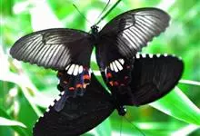 玉斑凤蝶Papilio helenus 别名白纹凤蝶,是凤蝶科凤蝶属美凤蝶亚属大型种类。雌雄同型;体翅皆黑色,后翅正面中室外有3个并列的白色斑,亚外缘有1列模糊的新月形红色斑,…全部>>