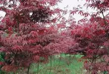 红枫,园艺种,槭树科槭属落叶小乔木,高5~8 m;树冠伞形,枝条开张,细弱。单叶对生,近圆形,薄纸质,掌状7~9深裂,裂深常为全叶片的1/2~1/3,基部心形,裂片卵状长椭圆形至披针形,先端尖,…全部>>
