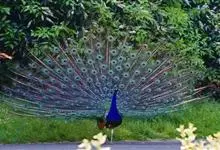 绿孔雀是鸡形目雉科孔雀属鸟类,别名:孔雀、越鸟、爪哇绿孔雀。雄性绿孔雀全身呈翠绿色,并反紫铜色光。头顶有一簇直立的冠羽,尾上复羽发达的约长1米,每羽端部有一个蓝色和翠绿色镶嵌的眼状斑,…全部>>