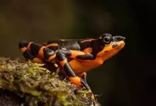 箭毒蛙,是无尾目箭毒蛙科箭毒蛙属动物。箭毒蛙体形较小,一般长1-6厘米,身上的颜色多为黑色与红色、黄色、橙色、绿色等;皮肤内有粘液分泌腺,能使皮肤随时保持湿润;四肢布满鳞纹;足间无蹼。…全部>>