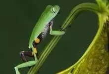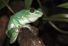 树蛙是树蛙科两栖动物的统称。树蛙体中等或大,一般雄蛙吻端斜尖,雌蛙吻端高钝;舌后端缺刻深,梨骨齿发达,鼓膜明显,指间有蹼或蹼发达,趾间近全满蹼,外侧跖较发达;鼻骨小、蝶筛骨显露,额顶宽或宽短,…全部>>