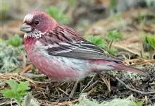 藏朱雀:全长约17-18厘米。雄鸟头部深红色具光辉,喉部暗红色具白色点斑;背部灰白色,各羽具玫瑰红色羽端,形成许多斑纹;腰部淡玫瑰红色;翅暗褐色,沾灰白,羽端沾玫瑰红或灰白色;尾暗棕色,端缘玫瑰红色…全部>>