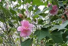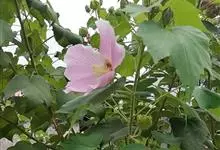 木芙蓉,锦葵科木槿属落叶灌木或小乔木。小枝上有细绒毛;叶片为卵状心形,托叶为披针形,常早落;花单生,花萼为钟形,花冠初为白色或淡红色,后逐渐变为深红色;果实为扁球形,有淡黄色的毛附着。花期8到10月。…全部>>