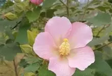 海滨木槿是锦葵科木槿属植物,落叶小乔木,株高3-5米,胸径20厘米,扁球形树冠,枝叶繁盛。厚纸质单叶互生,扁圆形、倒卵形或宽倒卵形,先端钝近平,具短突尖,基部圆形或浅心形,叶缘中上部具细圆齿,…全部>>