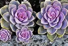 紫珍珠是景天科石莲花属的多年生肉质草本植物。植株中小型;叶片肉质,匙形,呈莲座状紧密排列;叶片粉紫色,叶缘呈粉白色,光照充足时颜色亮丽,不足时叶色会呈现深绿色或灰绿色,叶面光滑,被轻微白粉,…全部>>
