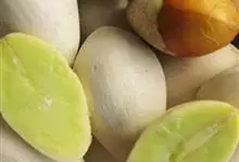 白果,又名鸭脚子、灵眼、佛指柑,银杏、公孙树子,是银杏的种仁。椭圆形,长1.5~2.5cm,宽1~2cm,厚约1cm。表面黄白色或淡黄棕色,平滑坚硬,一端稍尖,另端钝,边缘有2~3条棱线,中种皮质硬…全部>>