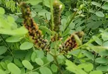 紫穗槐是豆科紫穗槐属落叶灌木植物。紫穗槐小枝幼时密被短柔毛,后渐变无毛;小叶卵形或椭圆形;穗状花序顶生或生于枝条上部叶腋,花冠紫色;荚果长圆形,成熟时棕褐色;花果期5-10月。…全部>>