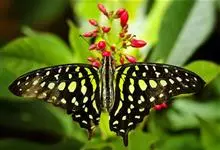 青带凤蝶Graphium sarpedon ,又名青凤蝶,是最普遍的中型凤蝶,飞行速度很快。青带凤蝶的翅膀中央有许多浅蓝色的斑点,很整齐地排列成一条直线。这些斑点由上而下逐渐变大,就像一条青色的带子。全部>>
