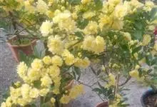黄木香花 Rehd.)是蔷薇科、蔷薇属植物,为木香花的变型品种,攀缘小灌木,高可达6米。小叶3-5枚,稀7枚,小叶片椭圆形或长圆状披针形,先端急尖或稍钝,基部近圆形或宽楔形,边缘有紧贴细锯齿。花小型,…全部>>