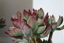 锦晃星是景天科、石莲花属多肉植物。多年生小灌木状多浆植物,灰绿色卵状倒披针形肥厚肉质叶轮状互生,全缘,椭圆尖头,长3-4厘米,宽2-2.5厘米,厚约1厘米,玲凉季节阳光下,叶端及上缘呈红色。…全部>>