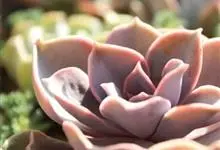 紫珍珠是景天科石莲花属的多年生肉质草本植物。植株中小型;叶片肉质,匙形,呈莲座状紧密排列;叶片粉紫色,叶缘呈粉白色,光照充足时颜色亮丽,不足时叶色会呈现深绿色或灰绿色,叶面光滑,被轻微白粉,…全部>>