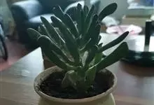 筒叶花月,是景天科青锁龙属的多年生草本植物。植株多分株,灌木状,茎较粗壮,圆柱形,表皮灰褐色;叶片肉质,互生,呈圆筒状,簇生于茎或分枝顶端,叶端呈斜截形,截面为椭圆形;花呈星状,淡白色;花期秋季。…全部>>