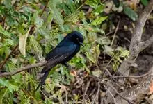 黑卷尾是雀形目卷尾科一属,又称铁练甲、铁燕子、铁林哥、羊蹄刺、榨油郎,体长约30厘米全身蓝黑色而具金属光泽,尾长且分叉较深。幼鸟似成鸟,金属光泽弱,下腹部具近白色的横纹。虹膜暗红色,嘴黑色,脚黑色。…全部>>