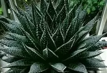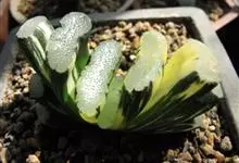 条纹十二卷 Haw.)是芦荟科十二卷属植物,为多年生肉质草本植物。植株高度10-15厘米,其呈莲座状生长;叶片紧密轮生在茎轴上,柔软多汁,呈长三角状披针形,极肥厚;叶面光滑、扁平,色深绿;叶背突起,…全部>>
