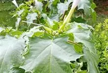 曼陀罗,茄科曼陀罗属一年生大型草本植物,全株光滑。有臭气;叶呈广卯形,边缘具不规则波状浅齿裂;花单生于枝杖间或叶腋,直立,有短梗;花萼是筒状裂片三角形,颜色为白色或淡紫色;果实为蒴果卵状,…全部>>