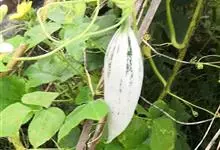 蛇瓜是葫芦科栝楼属的一年生攀援藤本植物。别名蛇豆。茎被柔毛及疏长柔毛状硬毛;叶圆形或肾状圆形,先端圆钝或宽三角形,叶基弯缺深心形;花雌雄同株,苞片钻状披针形,萼筒密被毛,裂片呈窄三角形,花冠白色,…全部>>
