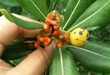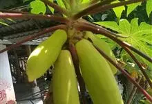 番木瓜,番木瓜科番木瓜属的常绿软木质小乔木,高达10米,具有乳汁;茎不分枝或有时于损伤处分枝;叶大且聚生于茎顶,近似盾形,叶柄中空;花单性或两性,有些品种雄株偶尔生两性花或雌花,…全部>>
