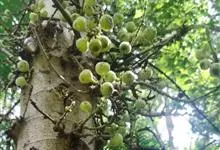 大果榕是桑科榕属的小乔木,株高可达10米;幼枝被柔毛;叶互生,宽卵状心形或近圆形;雄花无梗、匙形、花丝长,雌花生于雌株榕果内,子房白色;榕果簇生于树干基部或老茎短枝上、扁球形或陀螺形,…全部>>