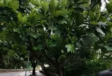 面包树 Fosberg)是桑科波罗蜜属植物。叶大,成熟之叶羽状分裂,表面深绿色,背面浅绿色;穗状花序单生叶腋,雄花序长圆筒形至长椭圆形或棒状;聚花果倒卵圆形或近球形;花期为3~5月,果期为7~10月。…全部>>