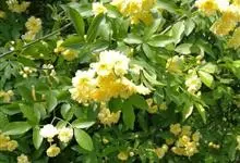 黄木香花 Rehd.)是蔷薇科、蔷薇属植物,为木香花的变型品种,攀缘小灌木,高可达6米。小叶3-5枚,稀7枚,小叶片椭圆形或长圆状披针形,先端急尖或稍钝,基部近圆形或宽楔形,边缘有紧贴细锯齿。花小型,…全部>>