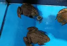 牛蛙,是蛙科、牛蛙属的养殖水产品动物,鸣声很大,远闻如牛叫而得名。牛蛙个体硕大,雌蛙体长达20厘米,雄蛙18厘米,最大个体可达2千克以上。头部宽扁,口端位,吻端尖圆面钝眼球外突,分上下两部分,…全部>>