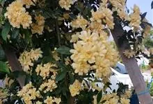 黄木香花 Rehd.)是蔷薇科、蔷薇属植物,为木香花的变型品种,攀缘小灌木,高可达6米。小叶3-5枚,稀7枚,小叶片椭圆形或长圆状披针形,先端急尖或稍钝,基部近圆形或宽楔形,边缘有紧贴细锯齿。花小型,…全部>>