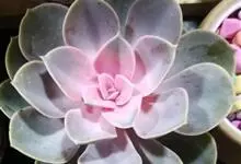 紫珍珠是景天科石莲花属的多年生肉质草本植物。植株中小型;叶片肉质,匙形,呈莲座状紧密排列;叶片粉紫色,叶缘呈粉白色,光照充足时颜色亮丽,不足时叶色会呈现深绿色或灰绿色,叶面光滑,被轻微白粉,…全部>>