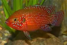 红魔鬼鱼(火鹤鱼、红魔鬼)鲈形目 > 慈鲷科 > 双冠丽鱼属 > 红魔鬼鱼