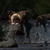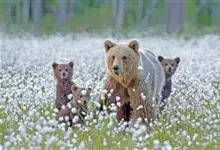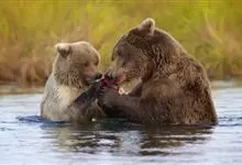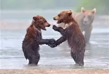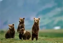 棕熊是熊科熊属哺乳动物。体形健硕,肩背隆起,身后长有一条短尾。毛色多为棕褐色或棕黄色;老年呈银灰色;幼年为棕黑色。野生条件下寿命为20—30年。棕熊分布广泛,主要分布在欧亚大陆和北美,…全部>>