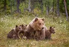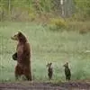 棕熊是熊科熊属哺乳动物。体形健硕,肩背隆起,身后长有一条短尾。毛色多为棕褐色或棕黄色;老年呈银灰色;幼年为棕黑色。野生条件下寿命为20—30年。棕熊分布广泛,主要分布在欧亚大陆和北美,…全部>>