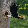 马来犀鸟是一种犀鸟。因嘴形粗厚而直,嘴上通常具盔突,形似犀牛角而得名。并趾型,外趾和中趾基部有三分之二互相并合,中趾与内趾基部也有些并合,善于攀援。每年入春后约5~6月由群居转为成对,选择高大树干距…全部>>