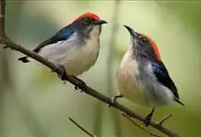 朱背啄花鸟:体重6-8克,体长81-97毫米。是一种小型的黑色及红色啄花鸟。雄鸟顶冠、背及腰猩红色,两翼、头侧及尾黑,两胁灰,下体余部白色。雌鸟上体橄榄色,腰及尾上覆羽猩红,尾黑。亚成鸟清灰色,嘴橘黄,…全部>>