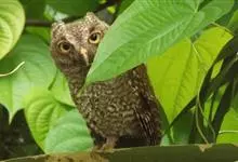 小雕鸮是脊索动物门鸟纲今颚总目、鸮形目雕鸮属动物。面盘显著,为淡棕黄色,杂以褐色的细斑。眼先密被白色的刚毛状羽,各羽均具黑色端斑。眼的上方有一个大形黑斑。皱领为黑褐色。头顶为黑褐色,羽缘为棕白色,…全部>>