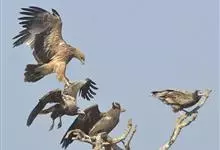 白肩雕:又名御雕,是大型猛禽。体长73-84厘米。体羽黑褐色,头和颈较淡,肩部有明显的白斑,在黑褐色的体羽上极为醒目,很远即可看见,这是区别其他雕的主要特征。滑翔时两翅平直,滑翔和翱翔时两翅亦不上举…全部>>