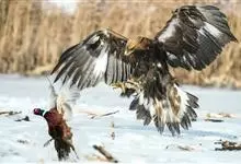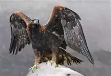 金雕:属于鹰科、雕属的猛禽。体长76-102厘米,翼展达2.3米,体重2-6.5千克。雌雄同色。未成年时,头、颈黄棕色;两翼飞羽除了最外侧三枚外基部均缀有白色,其余身体部分暗褐色;羽尾灰白色,…全部>>