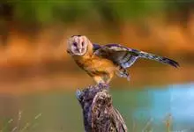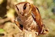 栗鸮:是鸟纲、草鸮科的猫头鹰。体长约29厘米,体重311-360克。是一种中等体型的红褐色鸮。其心形脸庞及时而竖起的“耳朵”与仓鸮甚似。上体红褐而具黑白点斑,下体皮黄偏粉具黑点,脸近粉色。虹膜深褐色,…全部>>