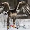 白头海雕又名美洲雕。是大型猛禽,成年海雕体长可达1米,翼展2米多长。眼、嘴和脚为淡黄色,头、颈和尾部的羽毛为白色,身体其他部位的羽毛为暗褐色,十分雄壮美丽。主要栖息在海岸、湖沼和河流附近,以大马哈鱼…全部>>